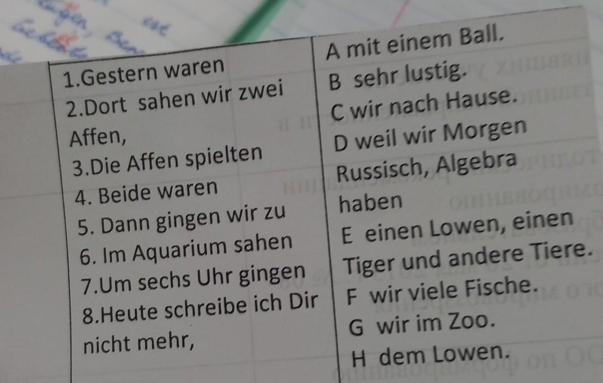8. Heute schreibe ich dir nicht mehr, weil wir morgen Russisch, Algebra haben.