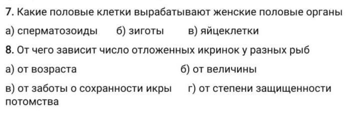 8)а) от возраста,в) от заботы о сохранности икры потомства