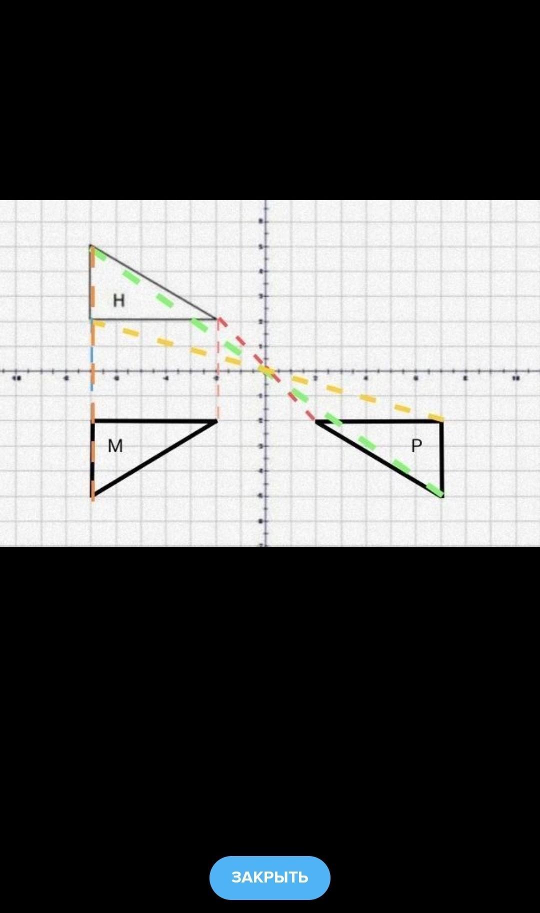 b) Отобразите фигуру Н относительно начала координат и обозначьте Р.