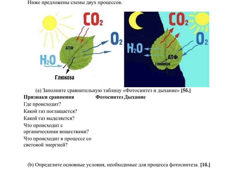 1. где происходит? фотосинтез происходит в хлоропластах, то есть в зелёных частях растения. дыхание происходит во всех клетках растения