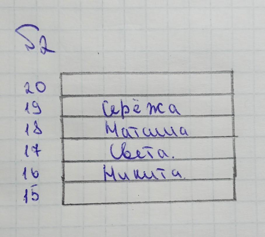 2) Сделай рисунок. Запиши, кто на каком эта-
