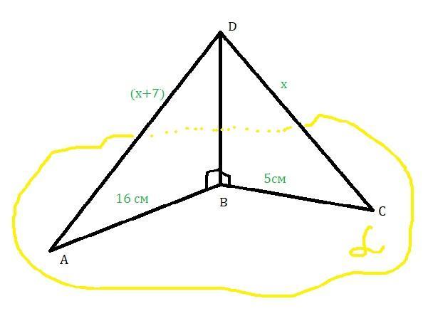 DB² = АD² - АВ² = (х+7)²-16² - з прямокутного ΔАDB