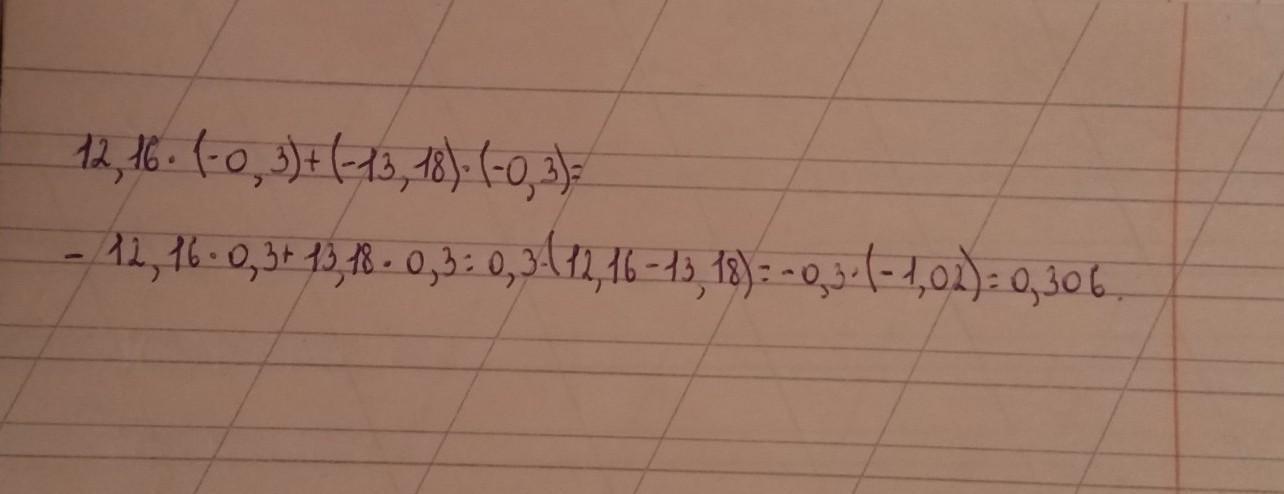 12,16*(-0,3) + (-13,18)*(-0,3)= (-0.3)*(12,16 + (-13,18))=(-0,3)*(-(13,18-12,16))=