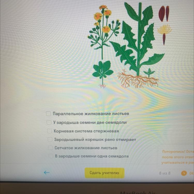 рассмотри рисунок выбери из списка три признака характерных для изображённого растения