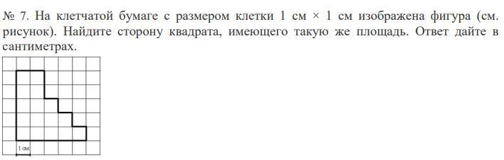 рисунок). Найдите сторону квадрата, имеющего такую же площадь. Ответ дайте в