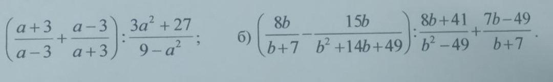 (\frac{8b}{b+7}-\frac{15b}{b^2+14b+49}):\frac{8b+41}{b^2-49}+\frac{7b-49}{b+7}=\\\\=(\frac{8b}{b+7}-\frac{15b}{(b+7)^2}):\frac{8b+41}{(b+7)(b-7)}+\frac{7b-49}{b+7}=\\\\=\frac{8b(b+7)-15b}{(b+7)^2}*\frac{(b+7)(b-7)}{8b+41}+\frac{7b-49}{b+7}=\\\\=\frac{(8b^2+56b-15b)(b-7)}{(b+7)(8b+41)}+\frac{7b-49}{b+7}=\\\\=\frac{(8b^2+41b)(b-7)}{(b+7)(8b+41)}+ \frac{7b-49}{b+7}=\\\\=\frac{b(8b+41)(b-7)}{(b+7)(8b+41)}+\frac{7b-49}{b+7}=\\\\=\frac{b(b-7)}{b+7}+\frac{7b-49}{b+7}=\\\\=\frac{b^2-7b+7b-49}{b+7}=