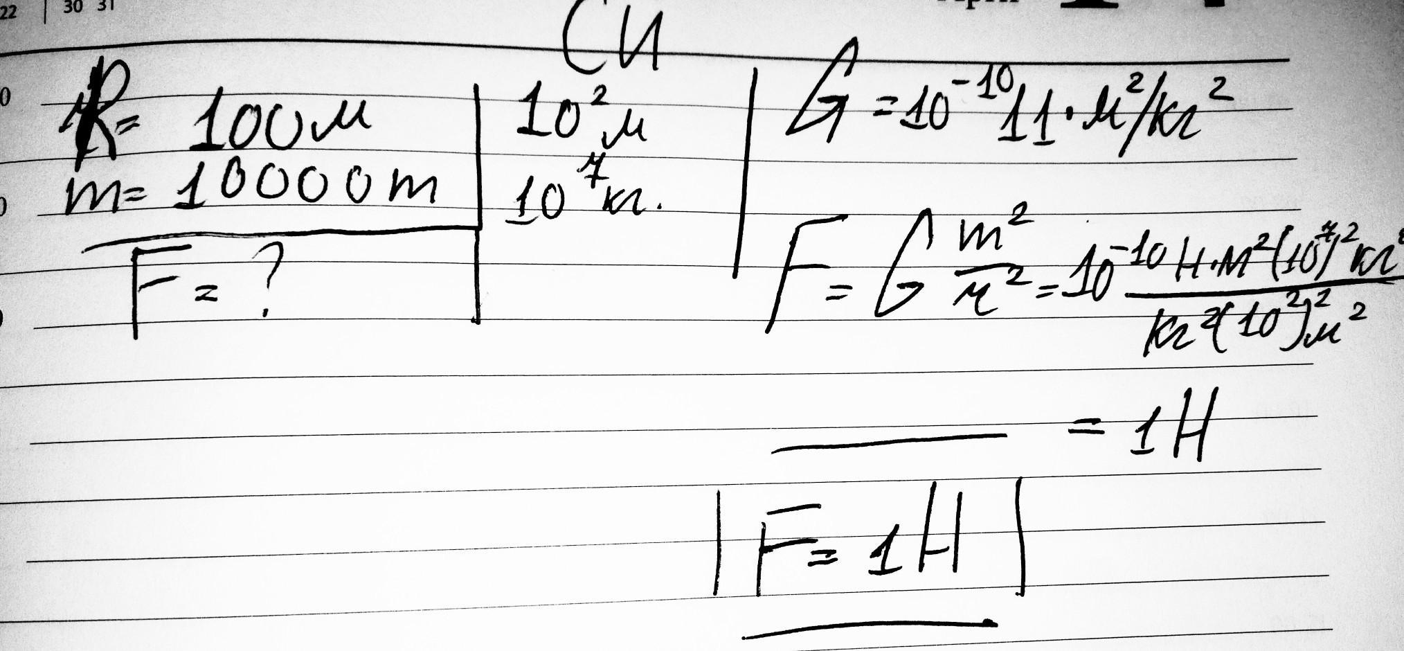 Оцените порядок значения силы взаимного тяготения двух кораблей, удаленных друг от друга на 100 м, если масса каждого из них 10 000 т.