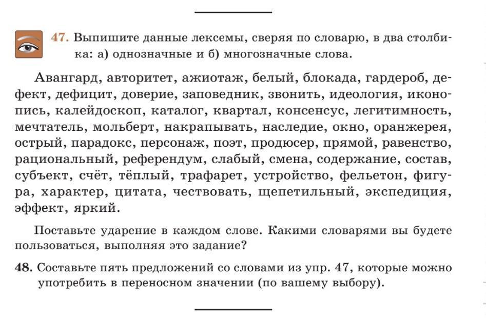 48. Составьте дять предложений со словами из упр. 47, которые можно употребить в перенoснoм значении (по вашему выбору).