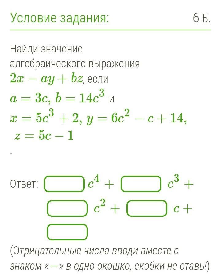 2x−ay+bz, если a=3c,b=14c3 и x=5c3+2,y=6c2−c+14,z=5c−1.
