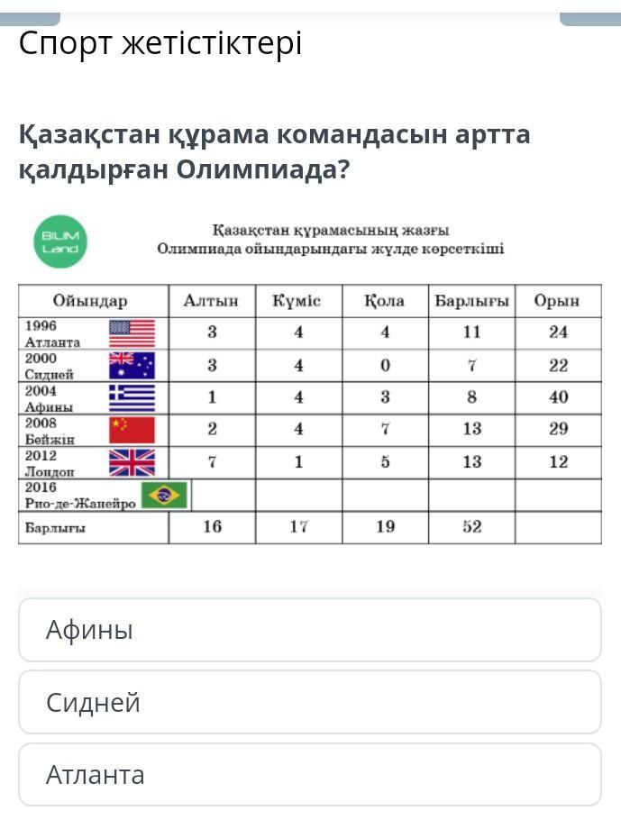 Қазақстан құрама командасын артта қалдырған Олимпиада?