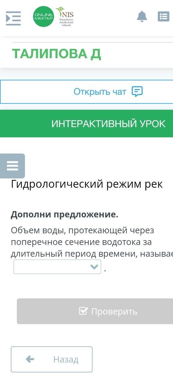 Дополни предложение. Объем воды, протекающей через поперечное сечение водотока за длительный период времени, называется