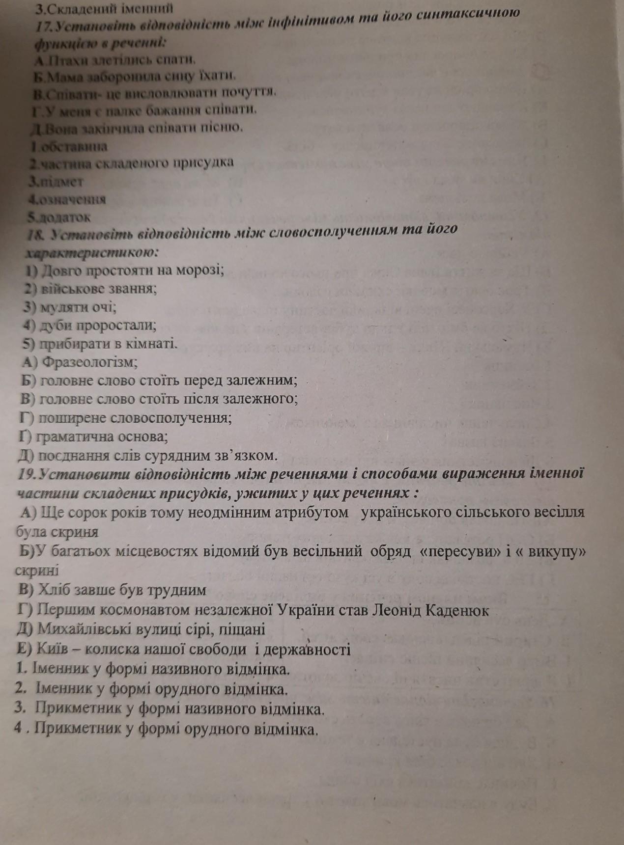 16. Установіть відповідність між присудками та способами їх вираження: А.Я рад би вовк в якісь ворота скочить Б. Вулиця була пустельна в темряві В. Хай він чекає біля криниці Г. Починає займатися схід сонця Д. Буду я навчатись мови золотої у трави-веснянки, у гори крутої.