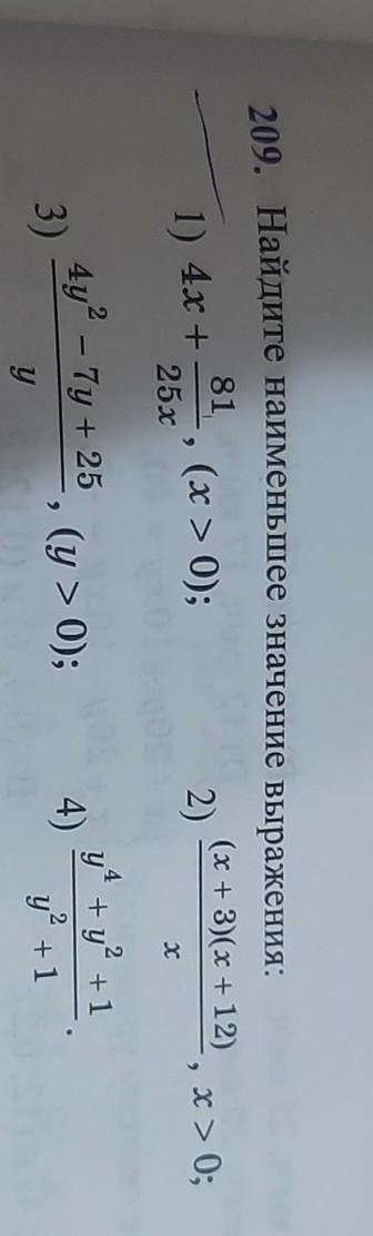 208. 1) Найдите наименьшее значение x+y, если хy = 9 их > 0.