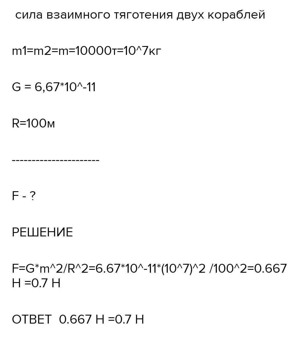 Бір-бірінен 200 м қашықтықта тұрған әрқайсысының массасы 8000 т екі кеменің өзара тартылыс күшінің мәні қандай болады?