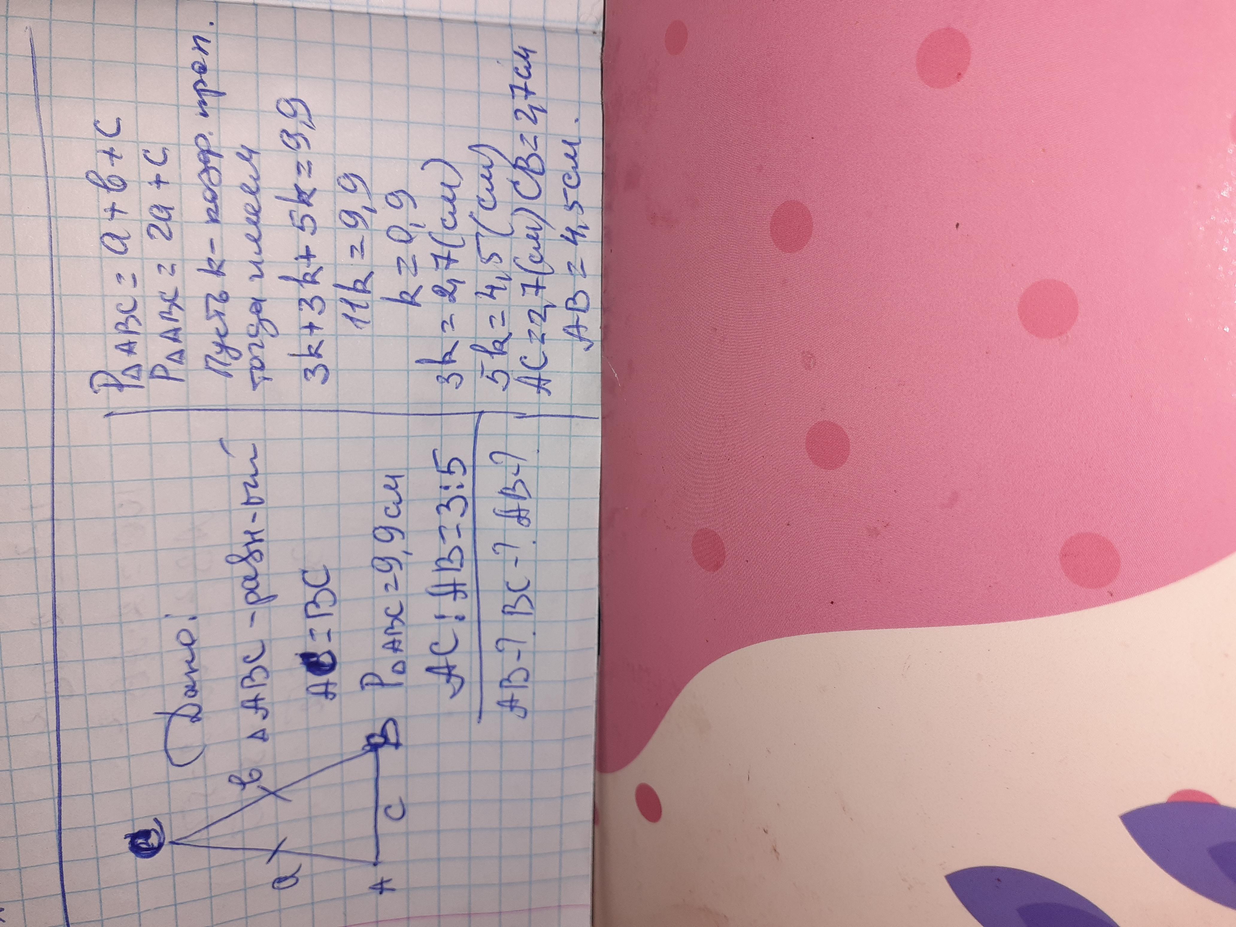 Основание: AB = 5x = 5*0,9 = 4,5 см