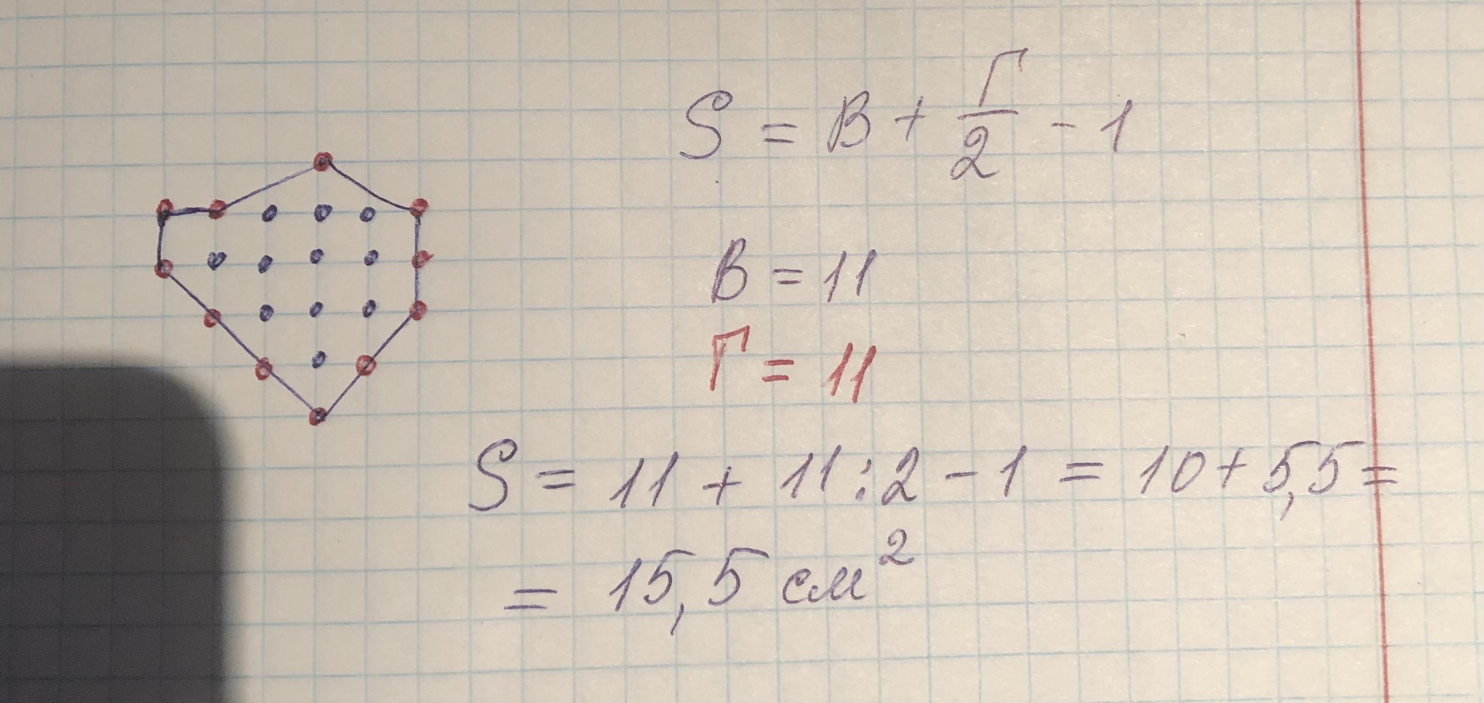 Найди площадь многоугольника, изображённого на рисунке, если длина клетки равна 1 см.