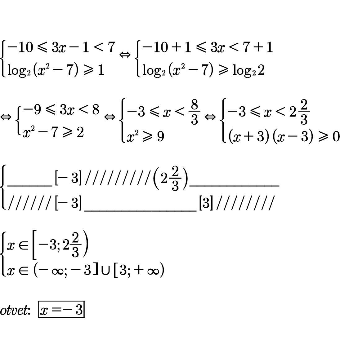 общий ответ подсистемы х=(-∞;-3]U[3;+∞)