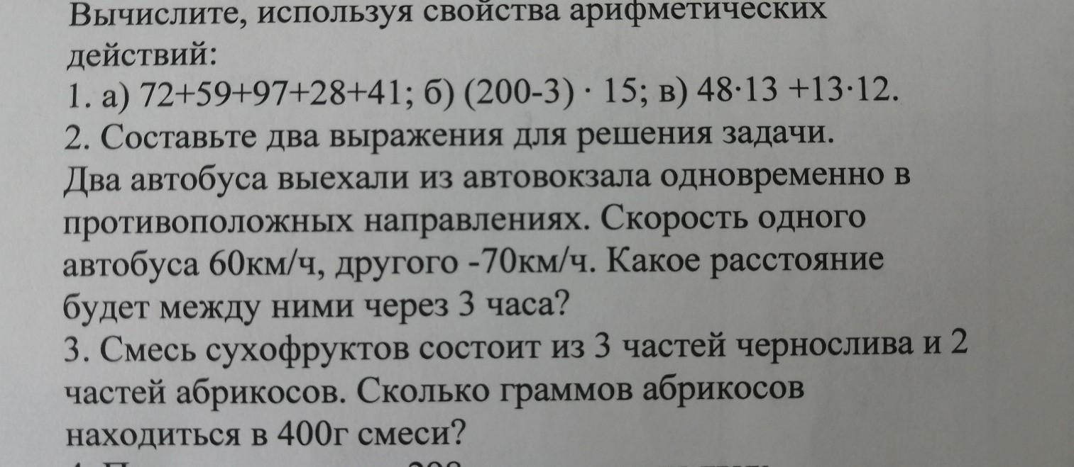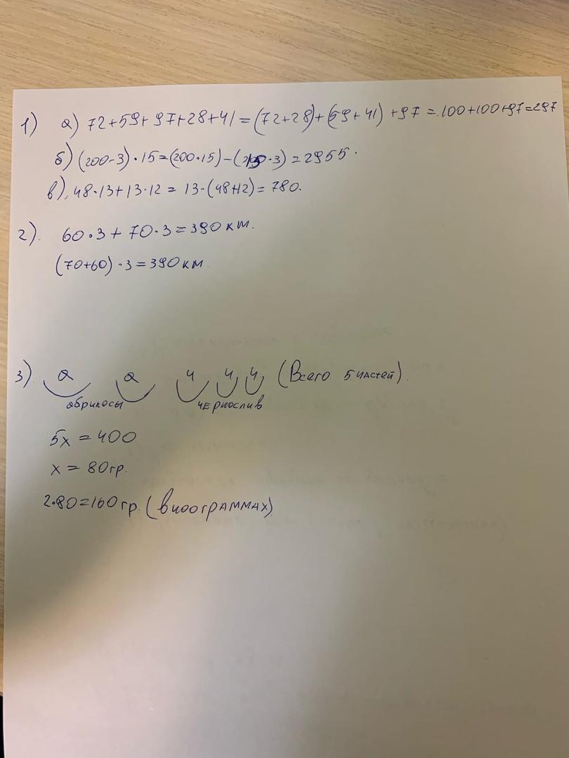 2 задание- 1 выражение: (70+60)*3=390 2 выражение: 60*3+70*3=390