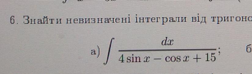 Подынтегральная функция зависит от sinx и от cosx. Применим универсальную тригонометрическую подстановку: