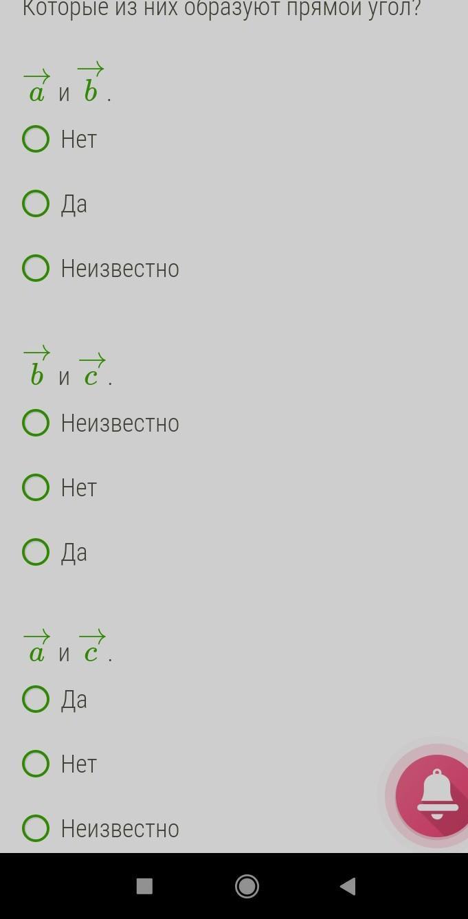 Векторы образуют прямой угол, если их скалярное произведение равно нулю