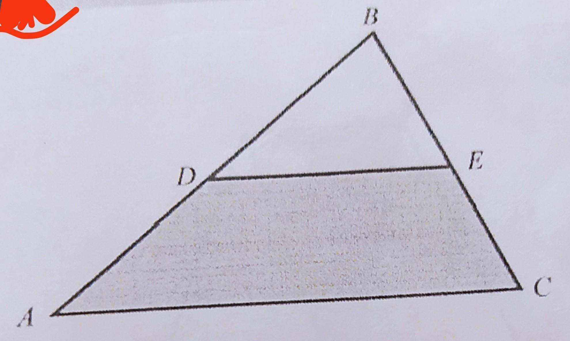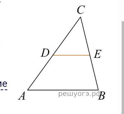 Поскольку DE — средняя линия, DE\parallel AB. Рассмотрим треугольники ABC и CDE, углы CDE и CAB равны как соответственные при параллельных прямых, угол C — общий, следовательно, треугольники подобны с коэффициентом подобия k= дробь, числитель — AC, знаменатель — CD = дробь, числитель — BC, знаменатель — CE = дробь, числитель — AB, знаменатель — DE =2. Площади подобных фигур относятся как квадраты коэффициентов подобия, поэтому S_ABC=k в степени 2 S_CDE=4 умножить на 42=168.