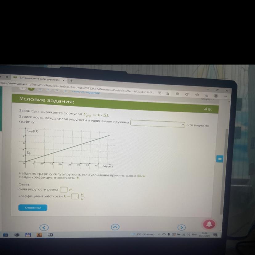 Зависимость между силой упругости и удлинением пружины прямо пропорциональная, что видно по графику.