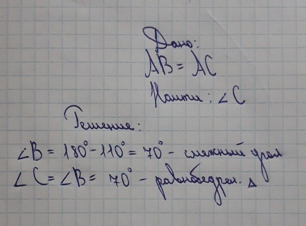 угол С = 70°. Треугольник равнобедренный, следовательно углы при основании равны.