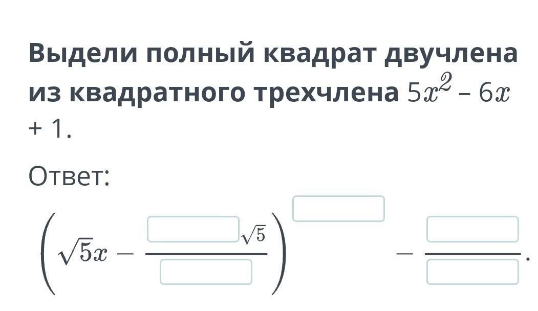 5x²-6x+1=((√5)x)²-2*(3/√5)(√5)x+((3/√5))²-((3/√5))²+1=