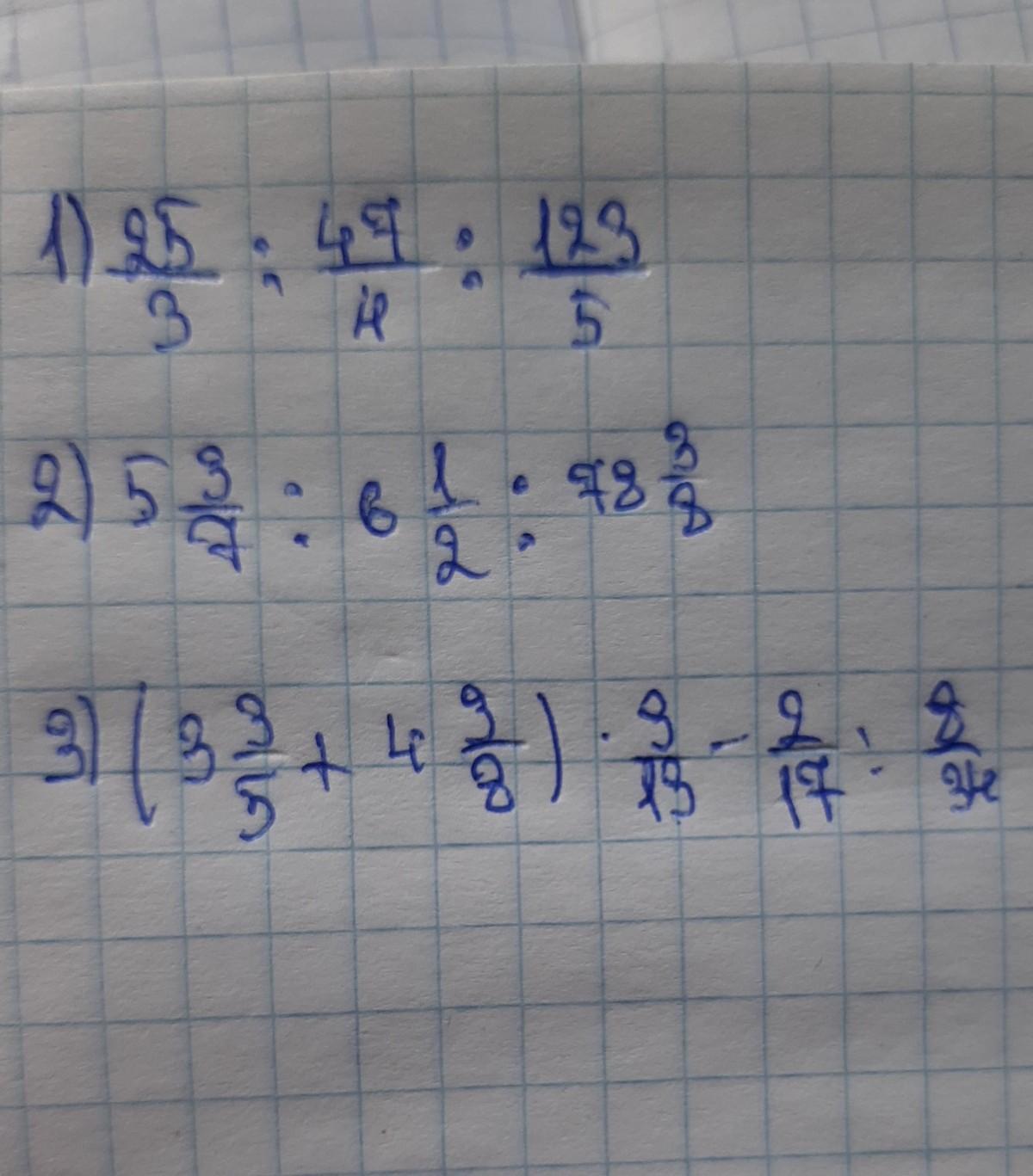 2) 5 и 3/7 : 6 и 1/2 : 78 3/8 =