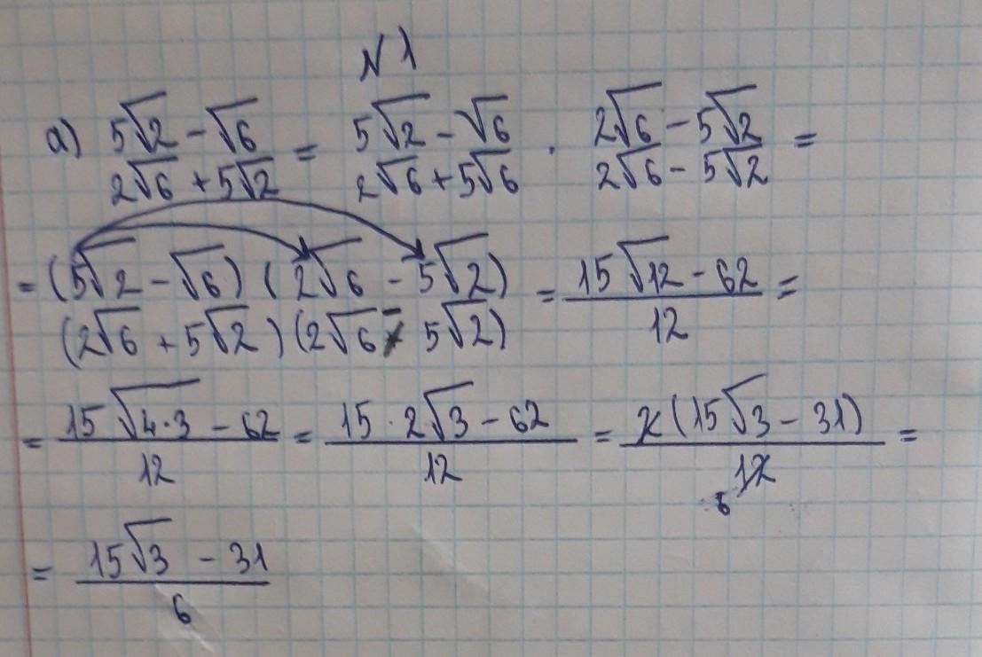 1) Нам необходимо избавиться от иррациональности в знаменателе.