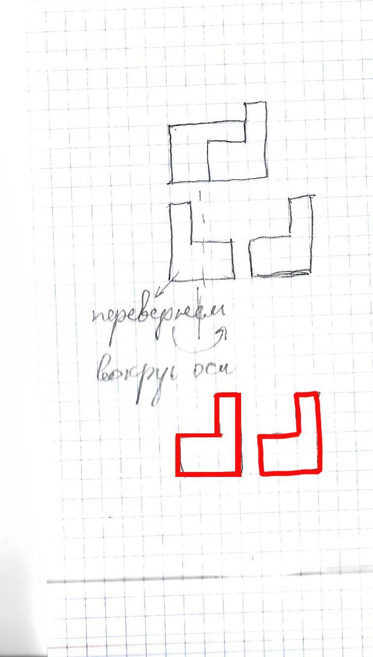 2. Разрежьте фигуру по линиям клеток на две части так, чтобы совпадали при наложении друг на друга (можно переворачивая части).