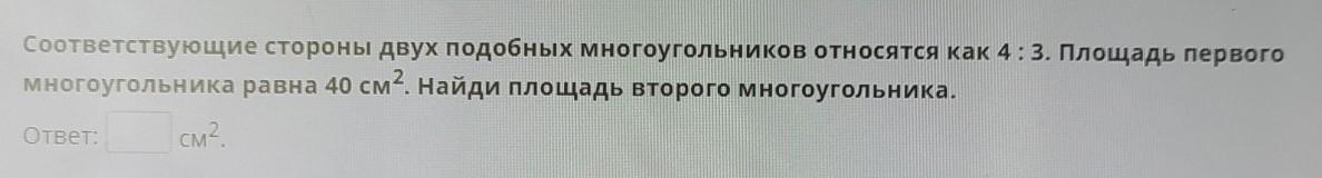 Площади подобных многоугольников относятся как квадраты сходственных сторон.