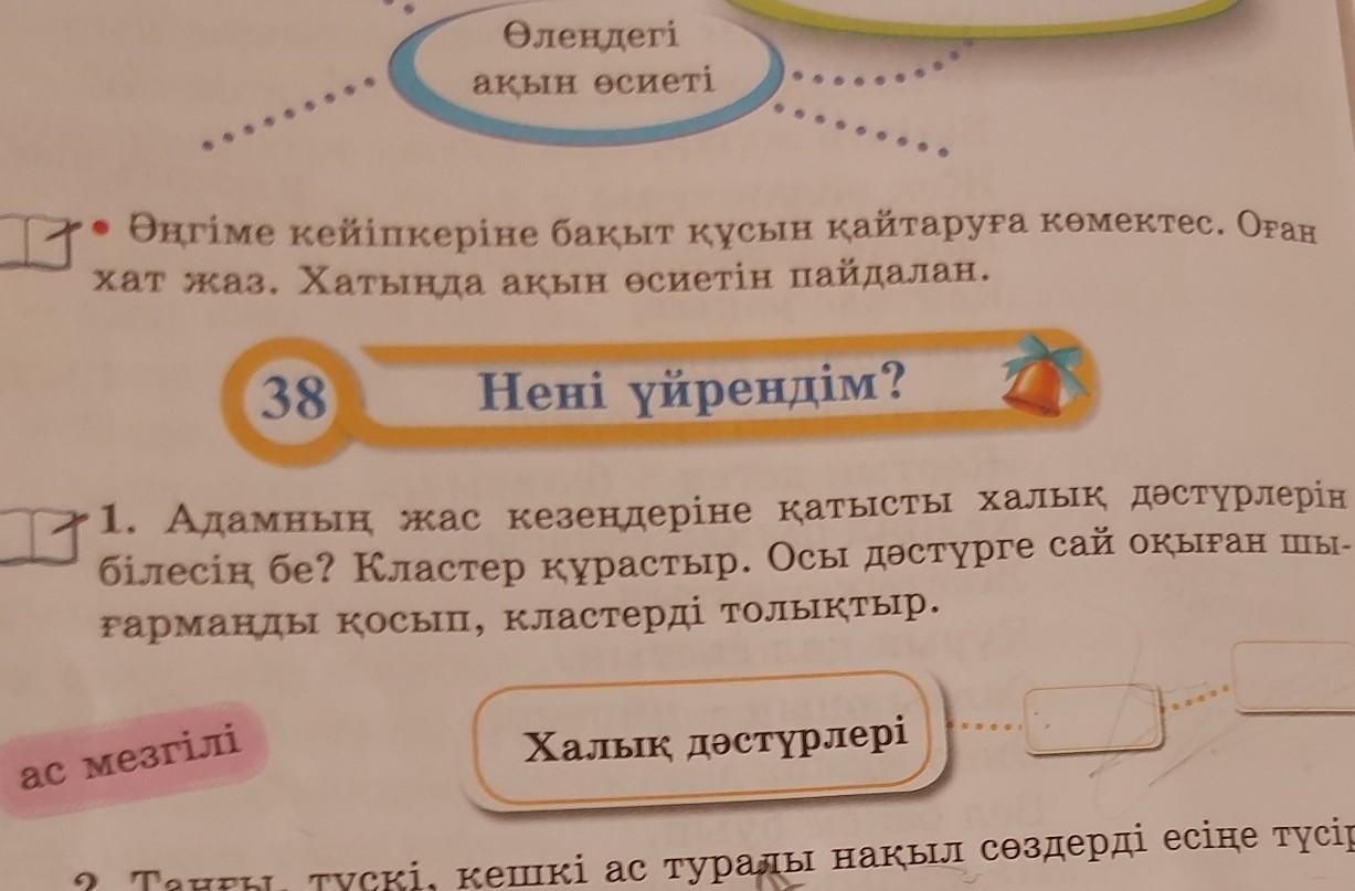 Адамның жас кезеңдеріне қатысты халық дәстүрлерін білесің бе Кластер құрастыр Осы дәстүрге сай оқыған шығармаңда қосып кластерді толықтыр