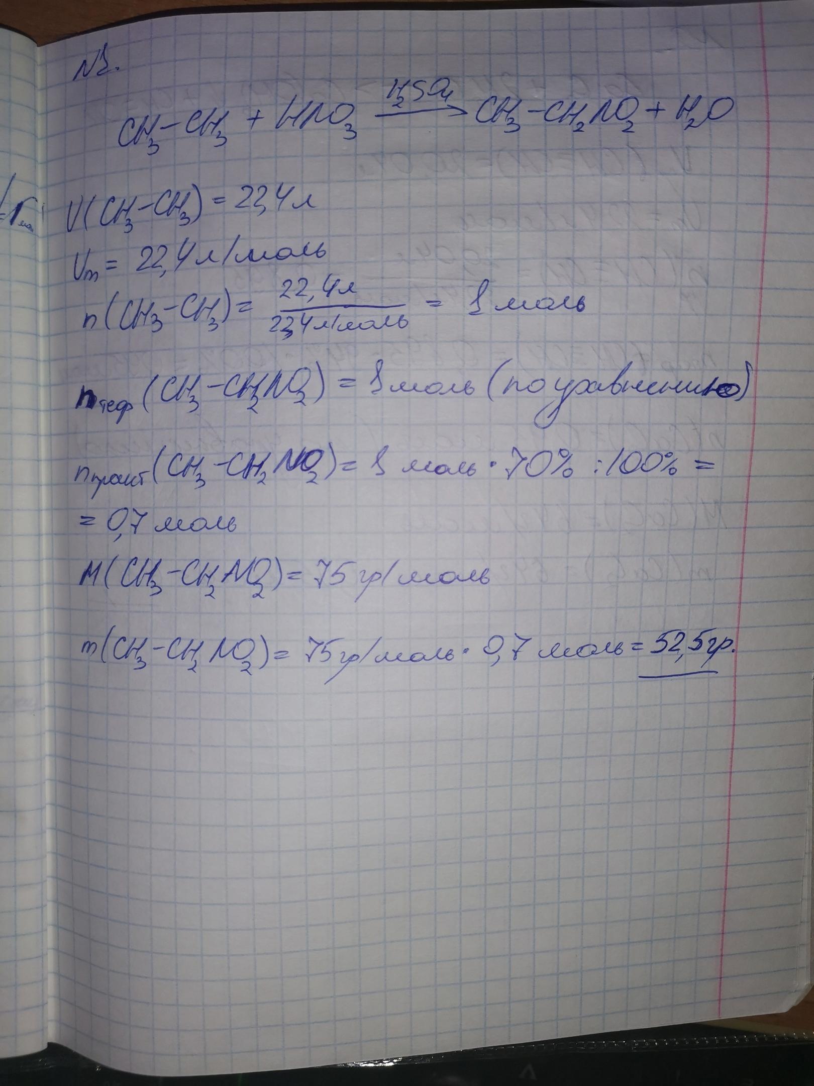 составляет….Определите массу нитроэтана, образующегося при нитровании 22,4 л этана, если выход продукта