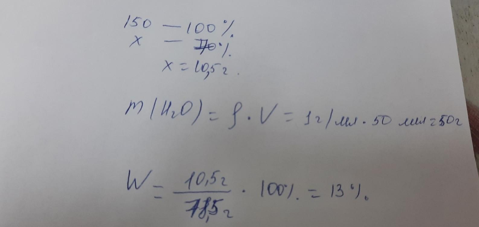 Вычислите массовую долю (в процентах) соли в растворе, полученном при добавлении к 150 г 7%-го раствора соли 18 г этой же соли и 50 мл воды. Ответ запишите с точностью до сотых.