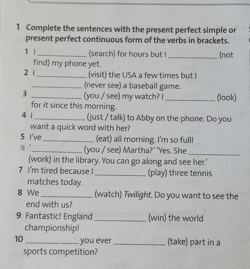 1) searched, did not find 2) were, did not see 3) saw, searched 4) just talked 5) ate 6) saw, worked 7) played 8) watched 9) won 10) have you ever taken