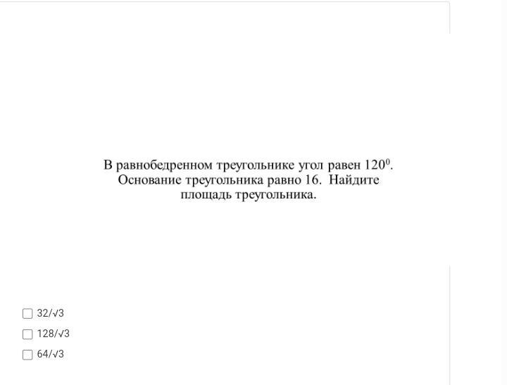 Дано: ΔАВС - равнобедренный, АВ=ВС, ∠В=120°, АС=16 см. S-?