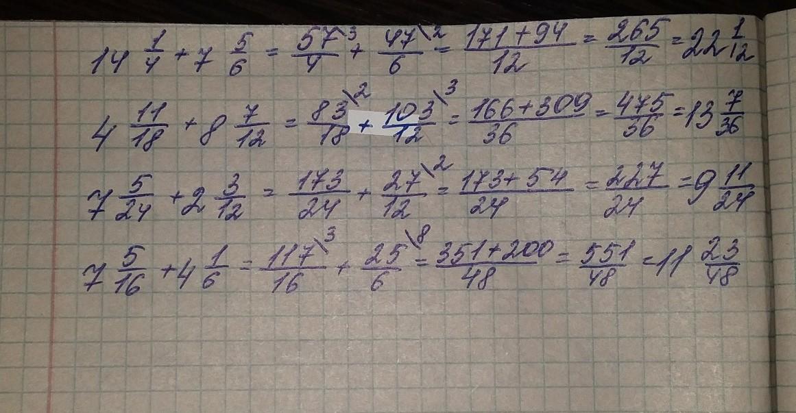 4) 7 5/16 + 4 1/6 = 7 15/48 + 4 8/48 = 11 20/48 = 11 5/12