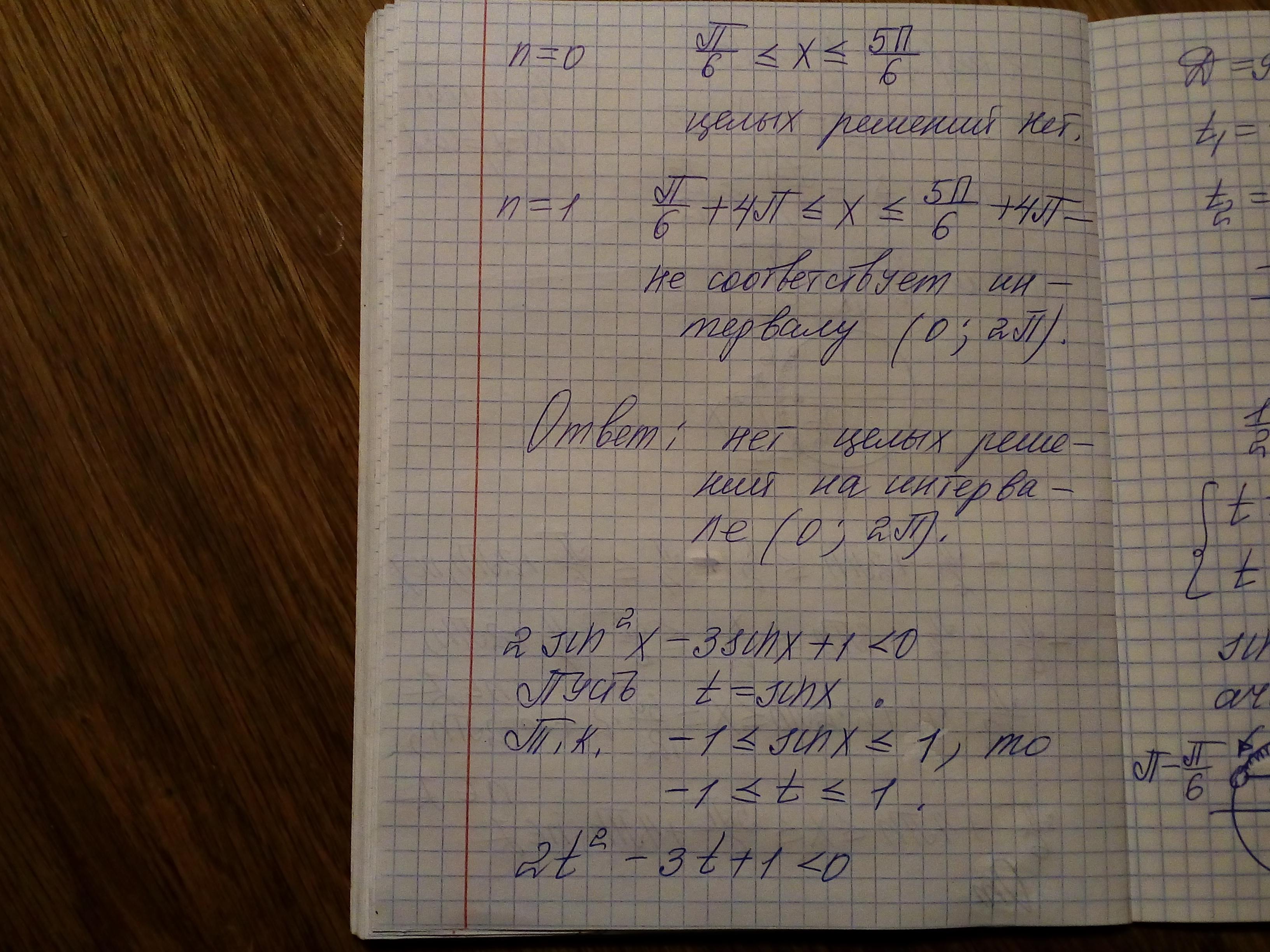 Определите сколько целых решений имеет неравенство на интервале (0;2п)