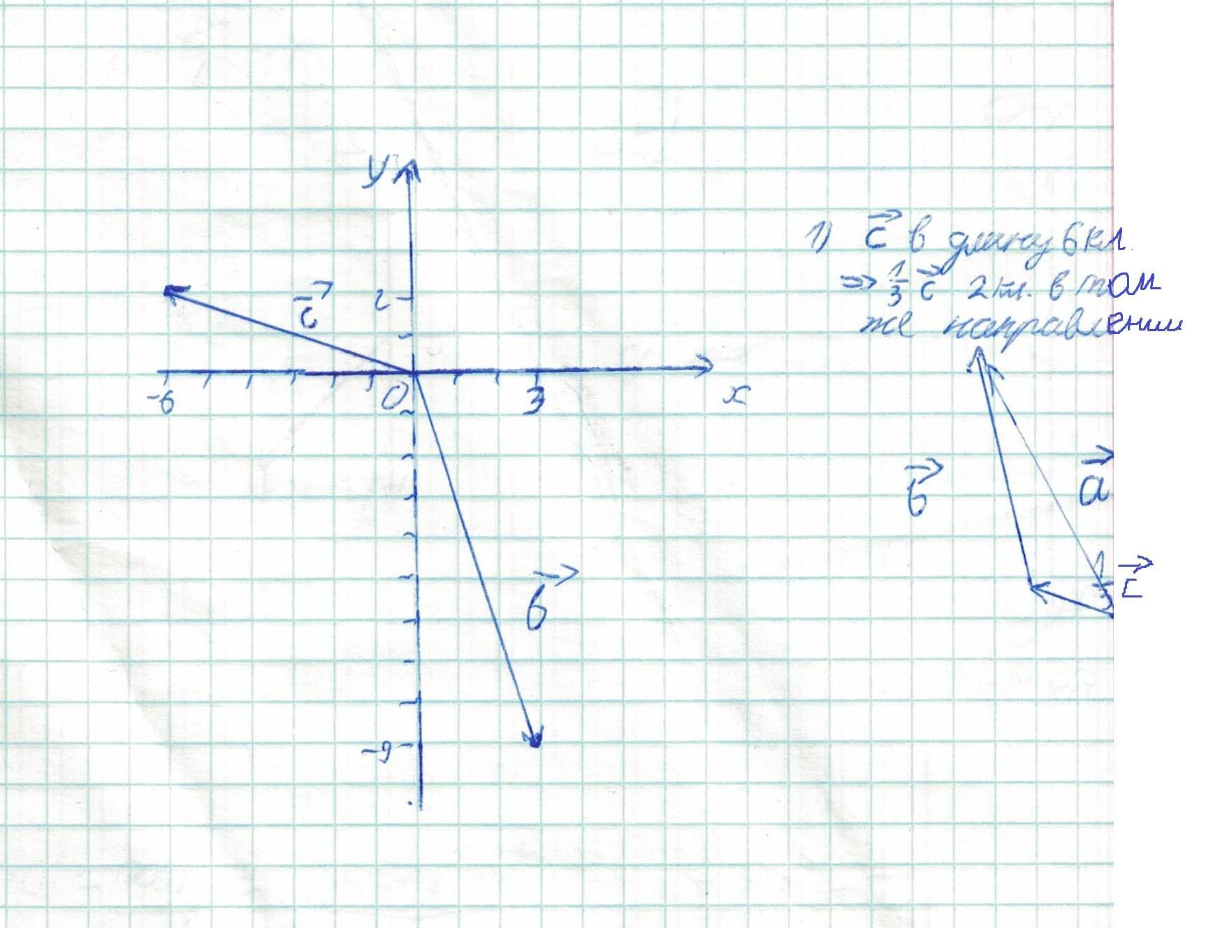Смотри изображение. Учти, что у меня там не хватило место построить полностью правильный в длину вектор b, но ты построй его полностью, затем соедини начало вектора 1/3c с концом вектора b
