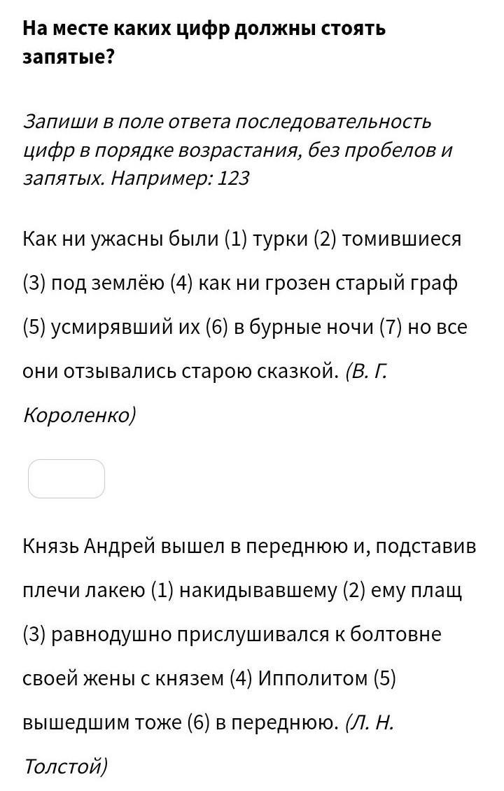 Князь Андрей вышел в переднюю и, подставив плечи лакею, (1) накидывашему ему плащ, (3) равнодушно прислушался к болтовне своей жены с князем Ипполитом, (5) вышедшим тоже в переднюю.