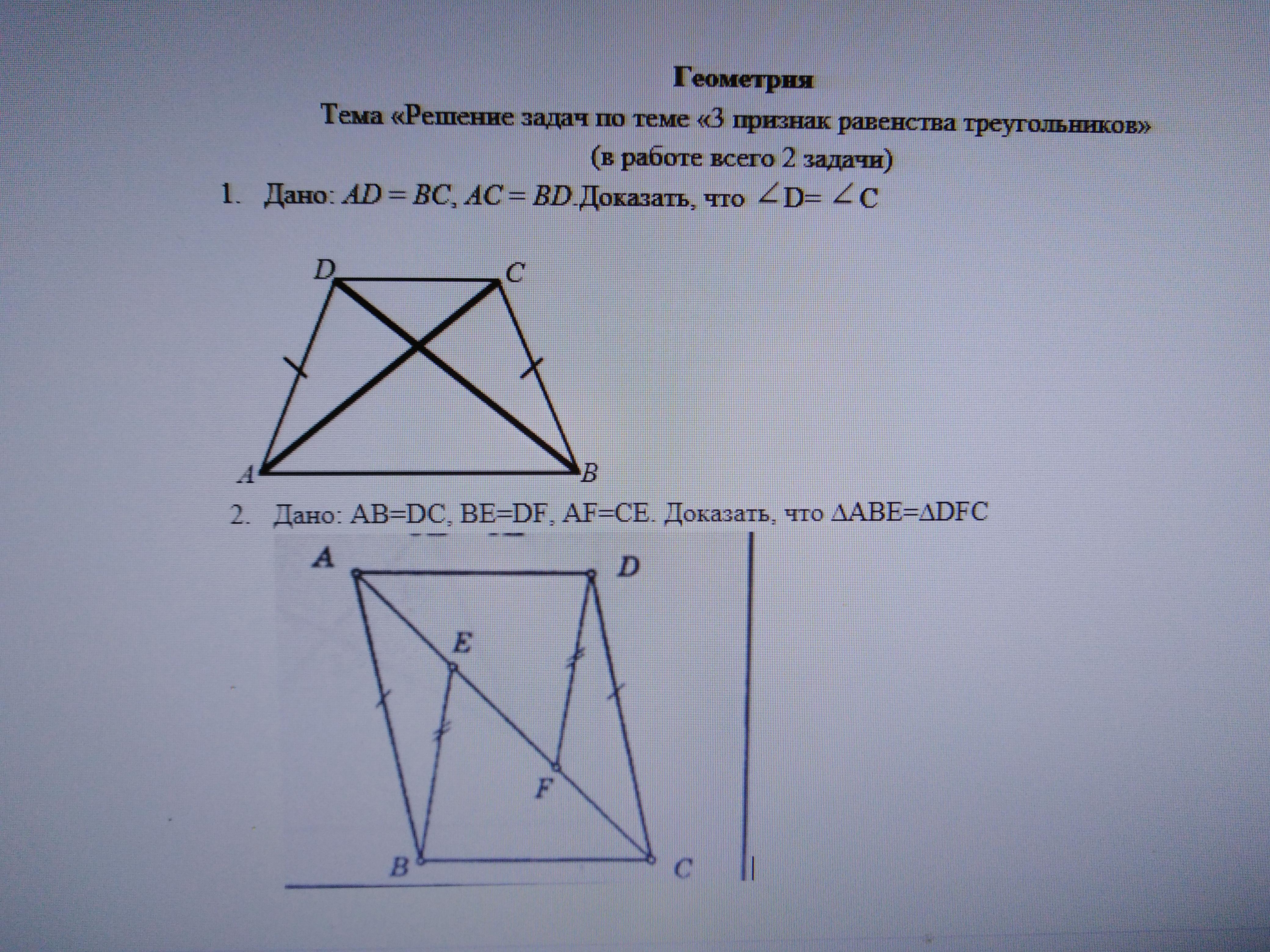 ⇒ ΔADC = ΔDCB (по 3-му признаку)
