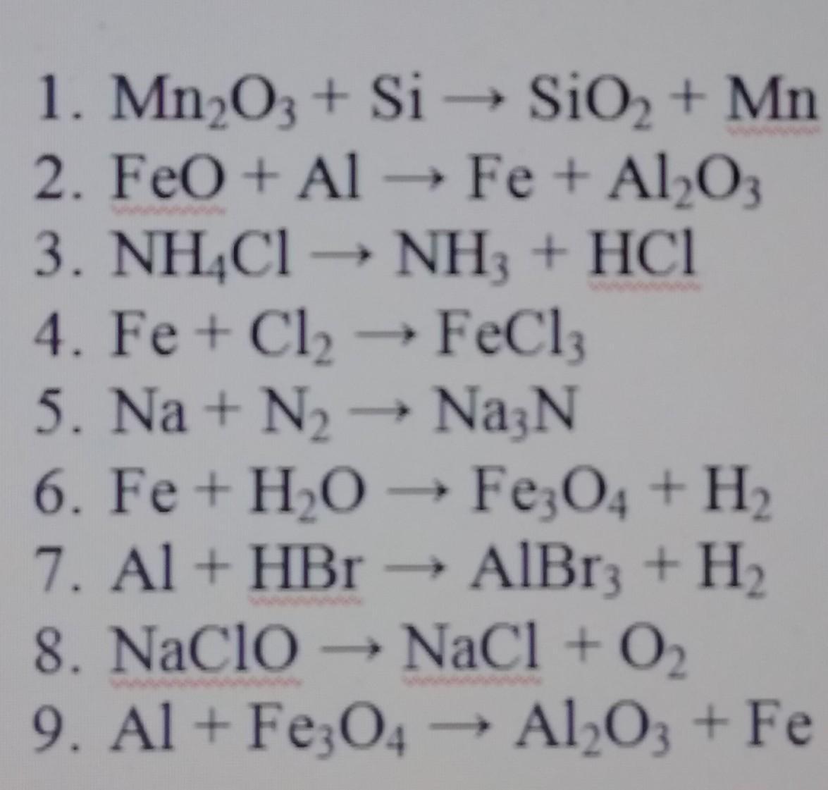 9. 8Al + 3Fe3O4 —> 4Al2O3 + 9Fe
