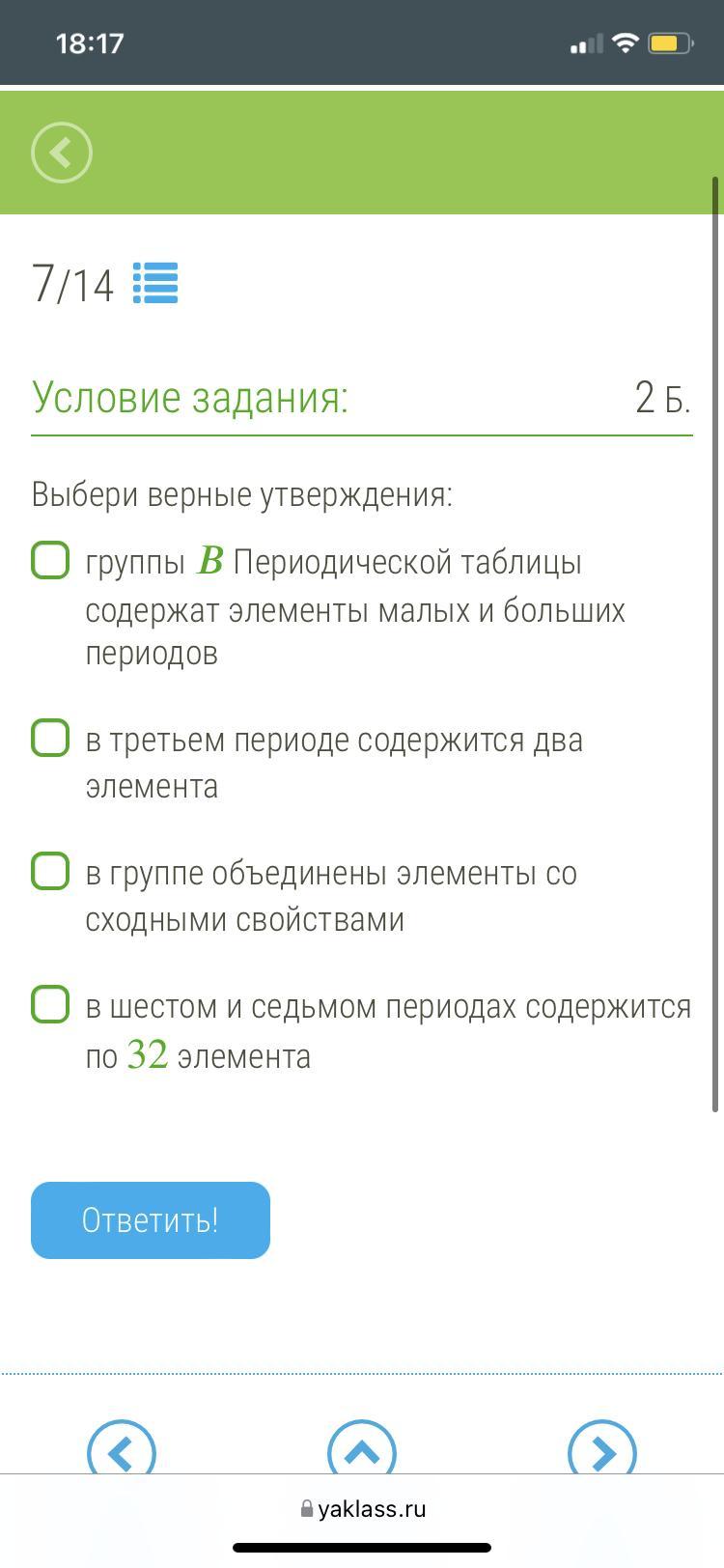 О в группе объединены элементы со сходными свойствами