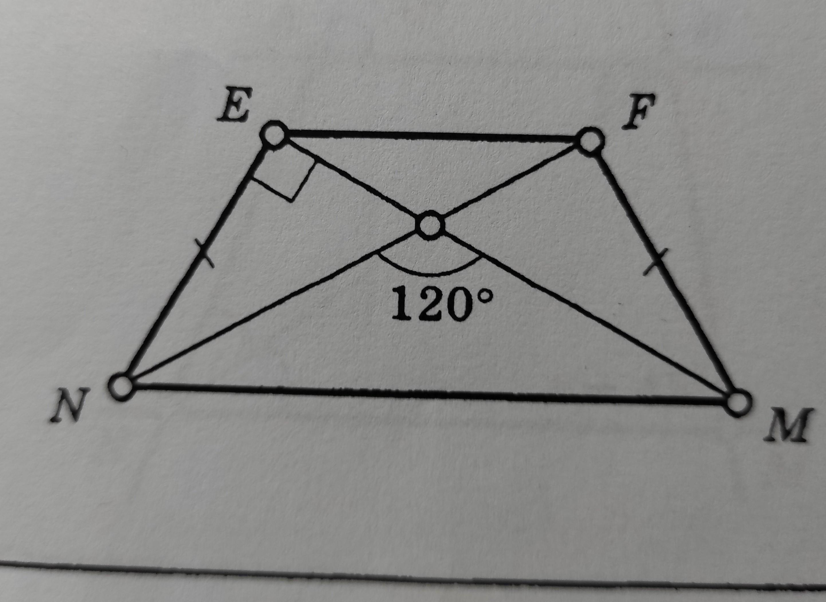 Так як EN=FM, то трапеція рівнобічна, відповідно кути при основах трапеції будут рівні: ∠N=∠M та ∠E=∠F