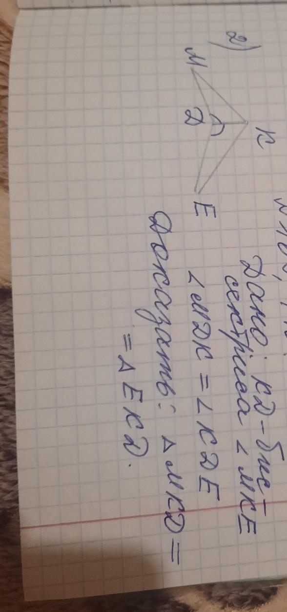 1)углМКД=углДКЕ,т.к. КД-биссектриса МКЕ