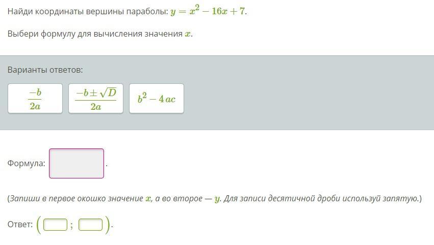 Координата вершины x параболы вычисляется по формуле -b/2a