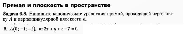 Составить уравнение прямой, проходящей через точку А и перпендикулярной данной плоскости.