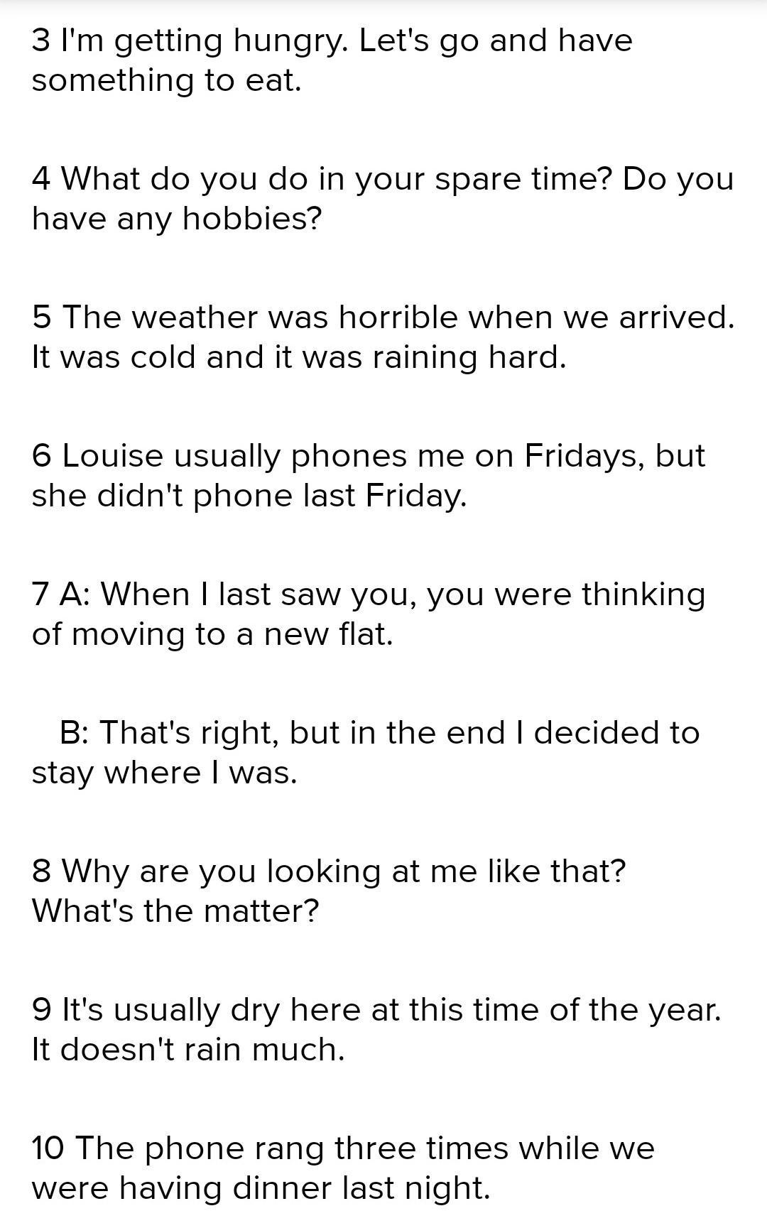 6 Louise usually phones me on Fridays, but she didn't phone last Friday.