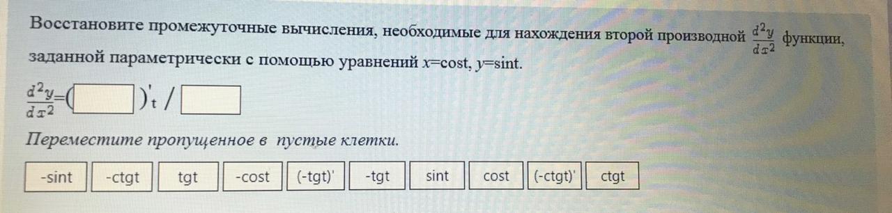 Ответ d²y/dx²=(-ctgt) 'по t/(-sinx)